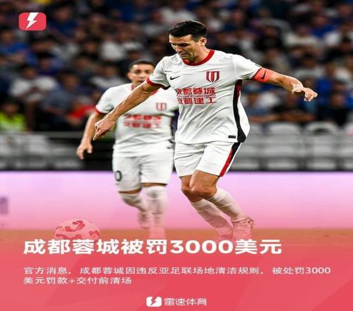 蓉城第一次参加亚冠精英联赛,就遭遇罚款处罚。