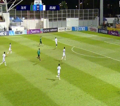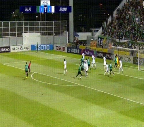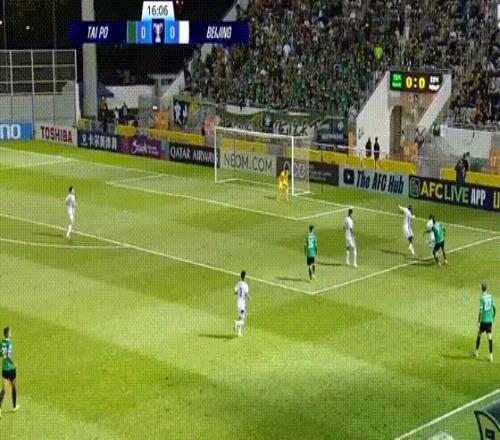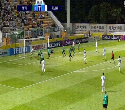 第36分钟,张稀哲右边路大脚开到禁区,柏杨甩头攻门顶进,北京国安扳回1球。