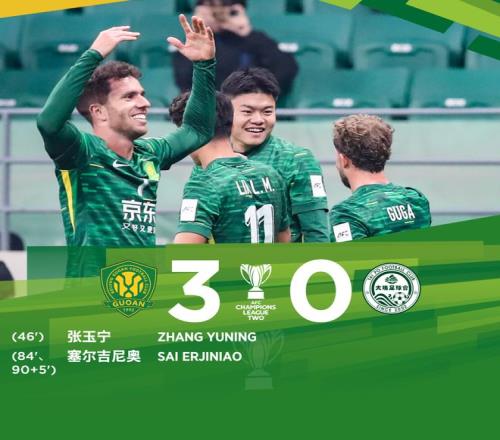 11月6日,在2025-26亚冠二级联赛小组赛第4轮中,北京国安主场3-0战胜大埔。