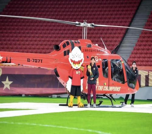 值得一提的是,在11月29日上海海港足球俱乐部举行的赛季总结会中,海港队长王燊超手捧火神杯,坐着同款直升机飞抵球场。