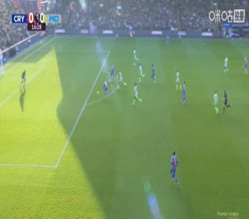 开场17分钟,水晶宫前场中路亚当-沃顿送出精彩传球,皮诺胸部停球后大禁区线上直接一脚劲射,可惜皮球击中横梁,曼城逃过一劫。