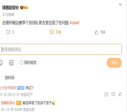 今晚CBA就2场比赛,赵探长没有明说是北控,但他在下方评论区已经排除了辽宁的嫌疑,因此具体是哪一支球队出现了更衣室问题,不言而喻了。