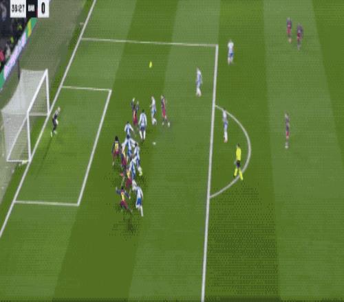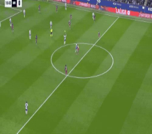 第37分钟,巴萨获得了前场任意球,拉菲尼亚传中,费兰·托雷斯跑得太快,不得不后仰头球攻门,皮球顶偏。