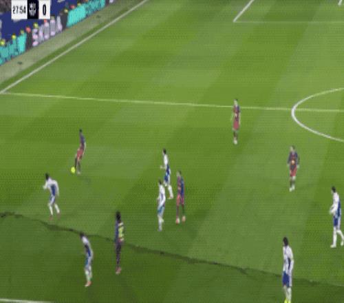 比赛踢了半小时,巴萨也只有这一次射门,西班牙人则完成了5次射门。