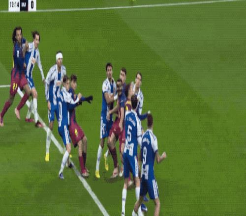 整个上半场,西班牙人完成了7次射门,巴萨则只有3次,两队互交白卷。