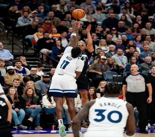 比赛伊始,森林狼反客为主,展现出了强队的底蕴。核心球星安东尼·爱德华兹状态火热,他在进攻端予取予求,全场轰下38分并摘下8个篮板,送出3次助攻和2次抢断,几乎凭借一己之力支撑着森林狼的进攻体系。在他的带领下,森林狼在大部分时间里保持着比分上的领先优势。此外,新援兰德尔贡献19分,展现了不错的适应性;麦克丹尼尔斯和迪文岑佐也分别拿下了18分和15分,森林狼的进攻点分布颇为均匀,似乎胜券在握。内线方面,戈贝尔虽然得分不多,仅有11分,但抢下10个篮板并送出4次关键盖帽,守护着森林狼的禁区。